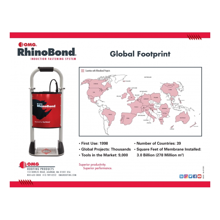 Rhinobond global footprint prikazuje uporabo prvega sistema indukcijskega...